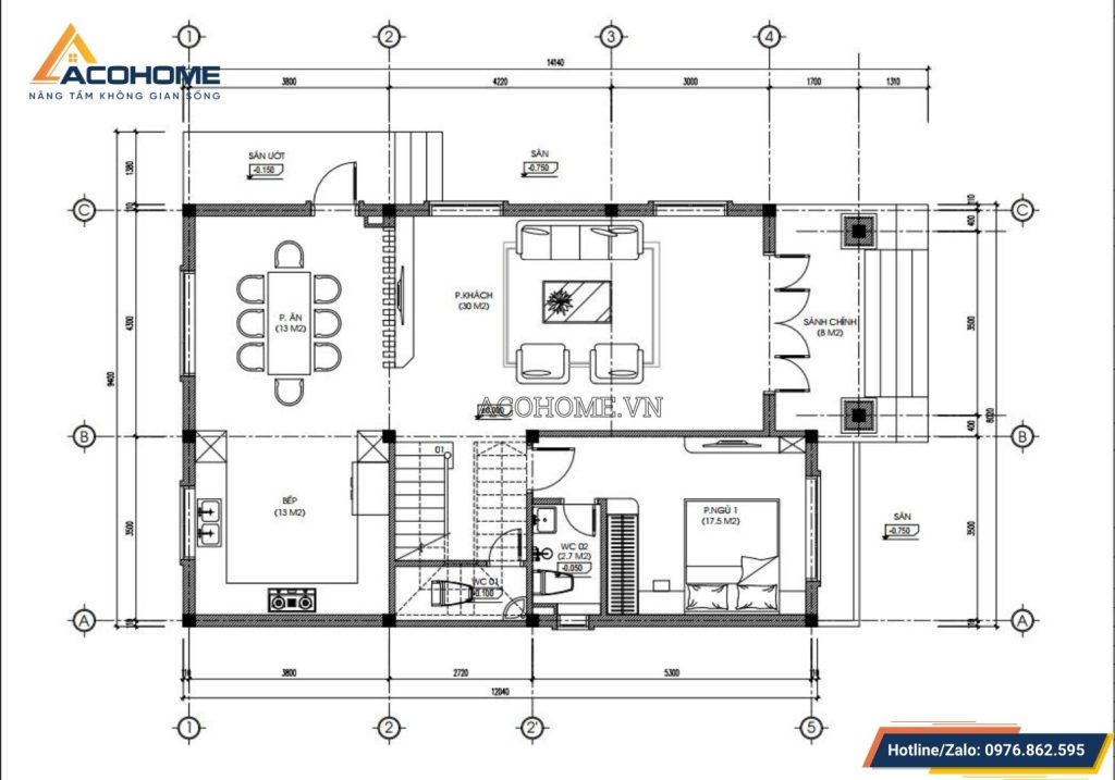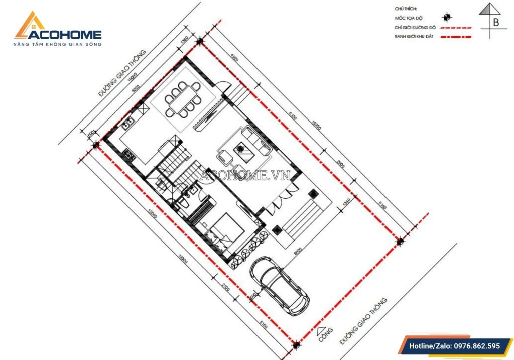 Công trình này được xây dựng trên khu đất có hình dáng không vuông vắn, nhưng các kiến trúc sư của Acohome đã khéo léo điều chỉnh thiết kế, tạo nên một không gian hài hòa và hoàn thiện. Nhờ vào sự sáng tạo và kinh nghiệm, công trình không chỉ khắc phục được nhược điểm của khu đất mà còn mang lại tính thẩm mỹ cao, đáp ứng đầy đủ các yêu cầu về công năng và tiện nghi cho gia chủ.
