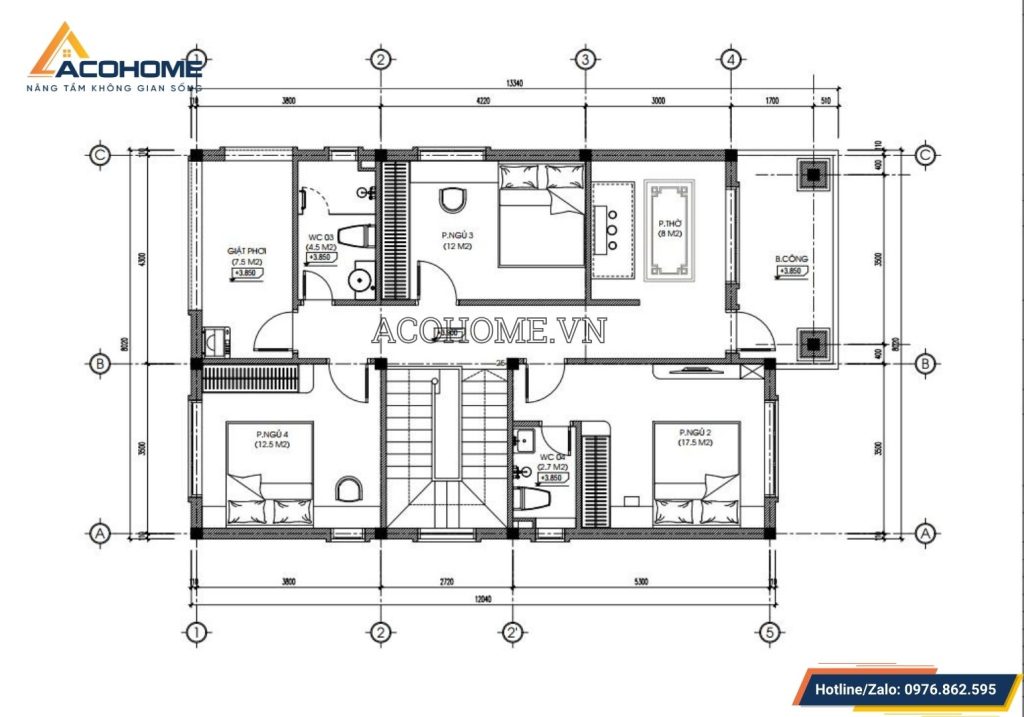 Khi di chuyển lên tầng 2, gia chủ sẽ tiếp cận ngay với phòng thờ trang nghiêm, đặt ở vị trí trung tâm. Phần diện tích còn lại bao gồm 3 phòng ngủ rộng rãi, trong đó phòng ngủ 02 được thiết kế tiện nghi với nhà vệ sinh khép kín, đảm bảo sự riêng tư. Nhà vệ sinh chung được bố trí hợp lý ở cuối tầng, phục vụ thuận tiện cho các thành viên còn lại trong gia đình.
