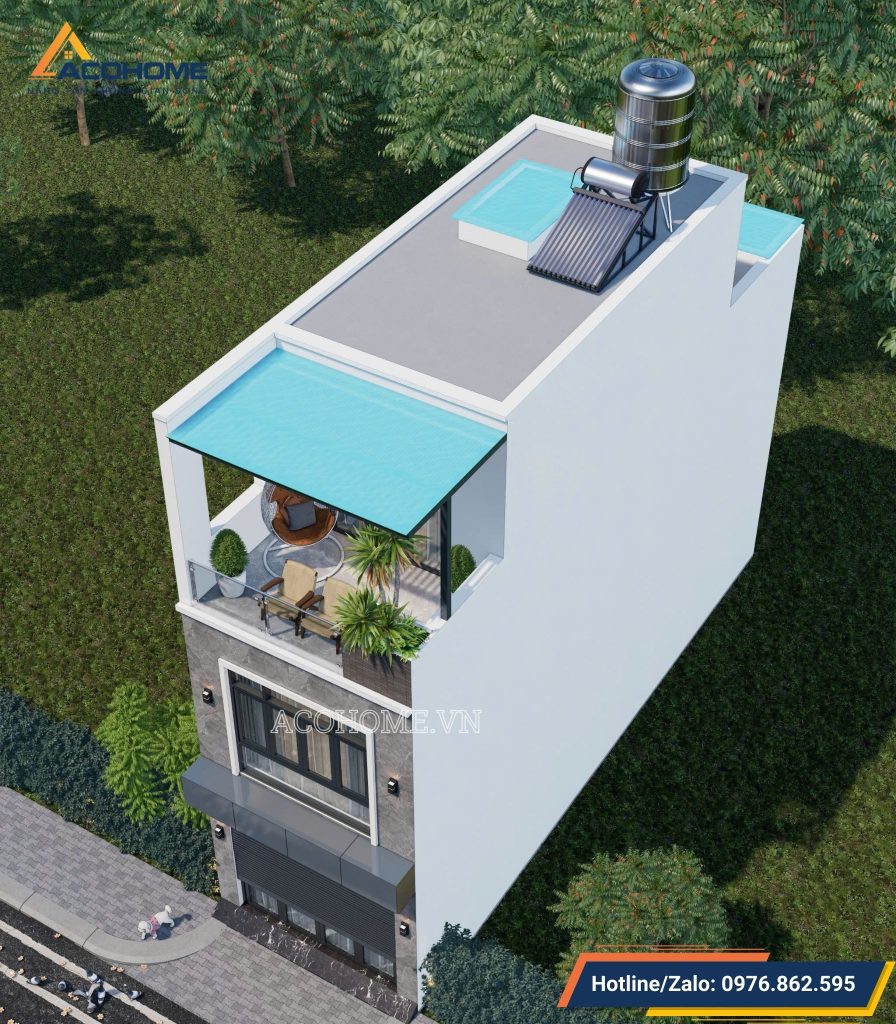 Ngoài ra, tuỳ theo sở thích của gia đình, có thể tận dụng phần mái bằng để téc nước và hệ thống thái dương năng hay làm không gian thư giãn ngoài trời lý tưởng.