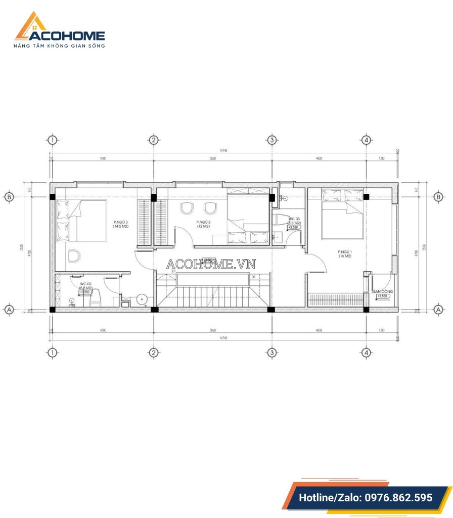 Tầng 2 được thiết kế riêng biệt cho không gian nghỉ ngơi, bao gồm 3 phòng ngủ rộng rãi, mỗi phòng đều được bố trí nội thất một cách khoa học và hợp lý, đảm bảo sự tiện nghi và thoải mái tối đa cho người sử dụng. Nhà vệ sinh chung được thiết kế đồng trục với tầng 1, thuận tiện cho việc sử dụng và tối ưu không gian, đồng thời đảm bảo tính thẩm mỹ và sự liền mạch trong kiến trúc của ngôi nhà.