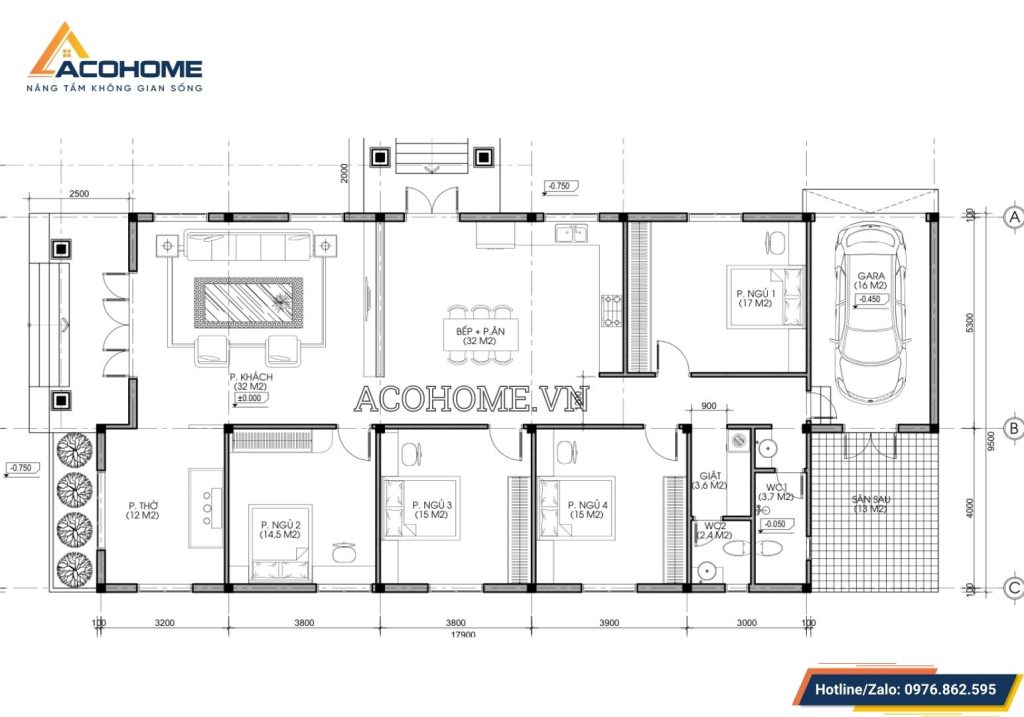 Gia đình anh Toàn tại Hà Nam mong muốn sở hữu một căn nhà cấp 4 mái Nhật theo phong cách hiện đại. Sau khi đội khảo sát của chúng tôi về đo đạc, khảo sát hiện trạng khu đất, lắng nghe những ý kiến của gia chủ, kiến trúc sư của Acohome đã lên phương án thiết kế cho gia đình anh Khanh một ngôi nhà mái Nhật 1 tầng trên diện tích xây dựng là 230m2 , công trình có chiều ngang là 9.5m, chiều sâu là 18m.