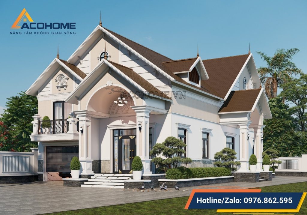 Ngôn ngữ tổng thể của ngôi nhà cấp 4 mái Thái được thiết kế theo phong cách tân cổ điển với kiến trúc bề thế kết hợp với hệ mái Thái sang trọng. Những gờ phào chỉ, họa tiết hoa văn hiện hữu trên diện tường, thức cột không quá cầu kỳ nhưng vô cùng chỉn chu và tinh tế mang đến sự hấp dẫn kì lạ.
